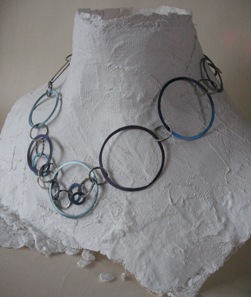 Collier titanium, blauwe tinten in combinatie met zilver