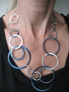 IndexCollier van titanium, in blauw/paars/groene tinten, gecombineerd met matzilveren schakels