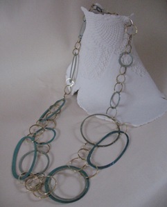 Lang collier met ronde en ovalen vormen, titanium/messing